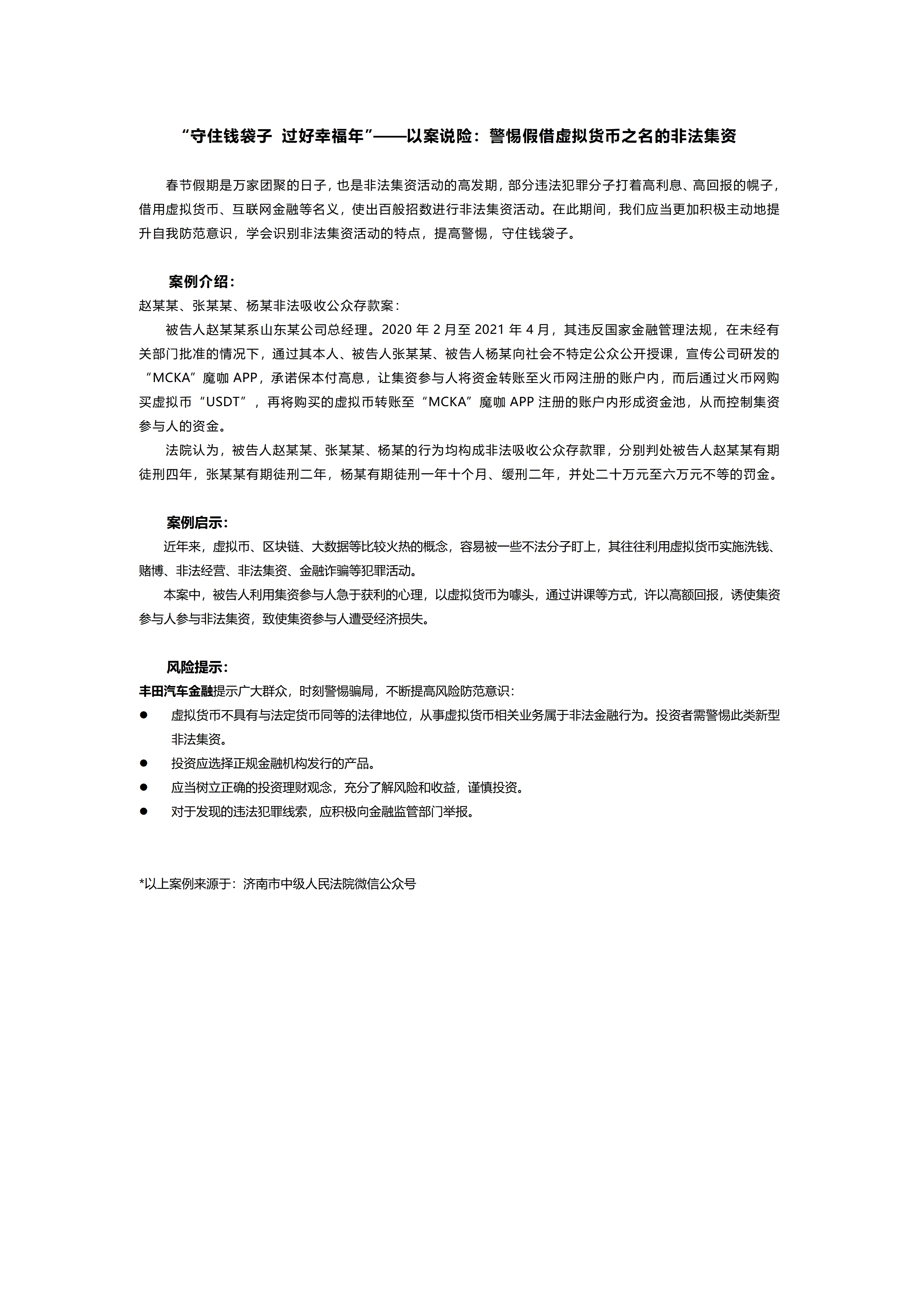 “守住钱袋子 过好幸福年”——以案说险:警惕假借虚拟货币之名的非法集资