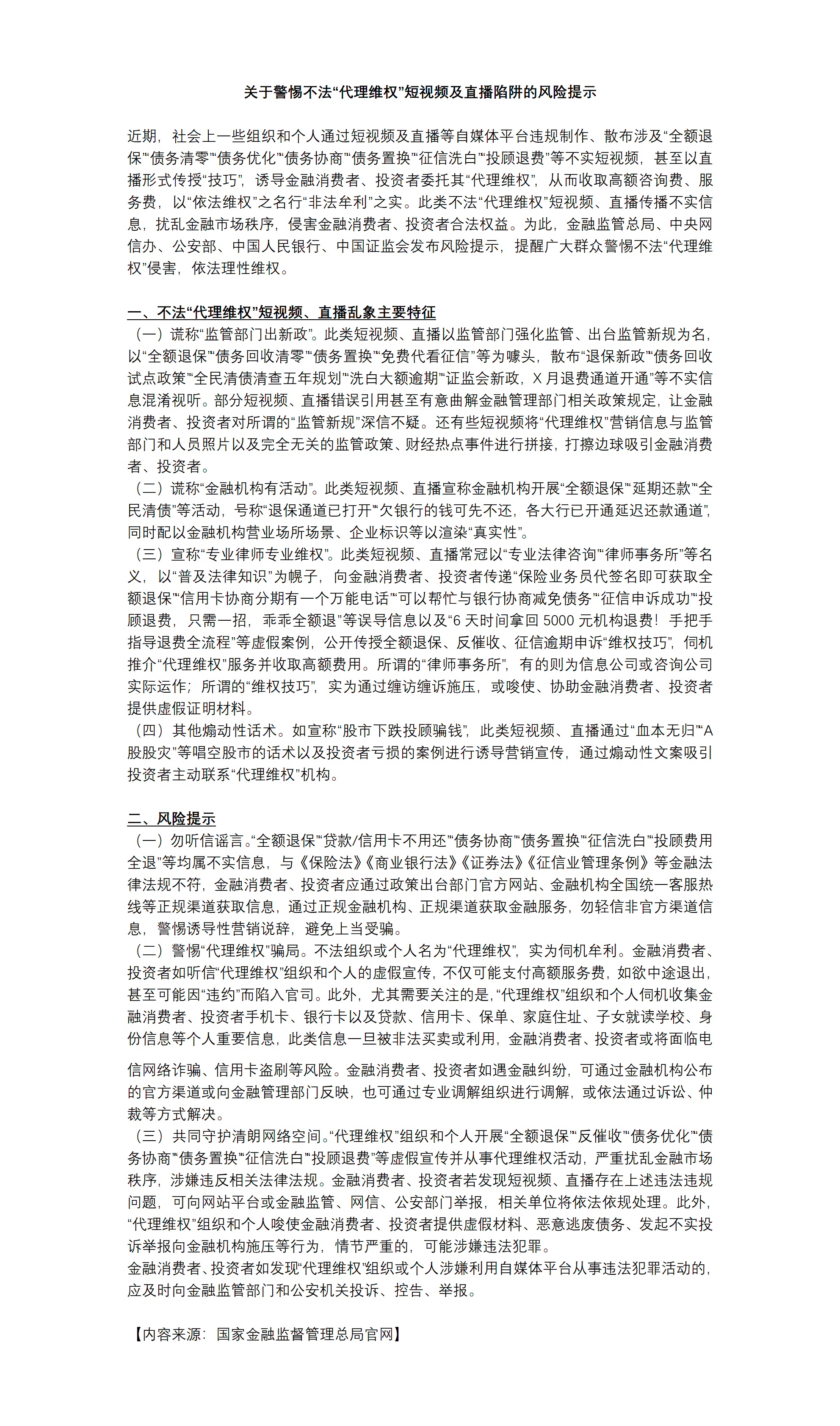关于警惕不法“代理维权”短视频及直播陷阱的风险提示
