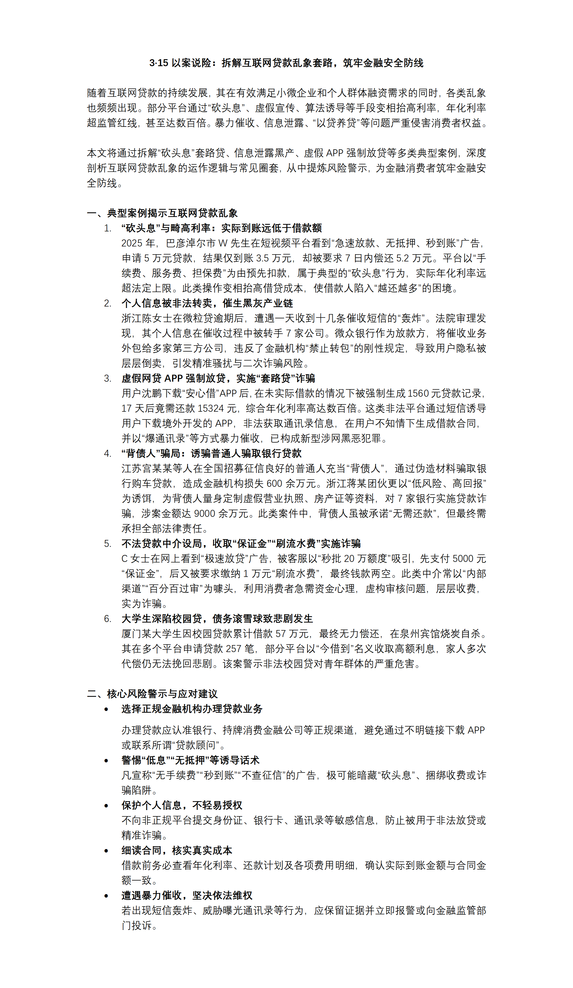 3·15以案说险:拆解互联网贷款乱象套路,筑牢金融安全防线